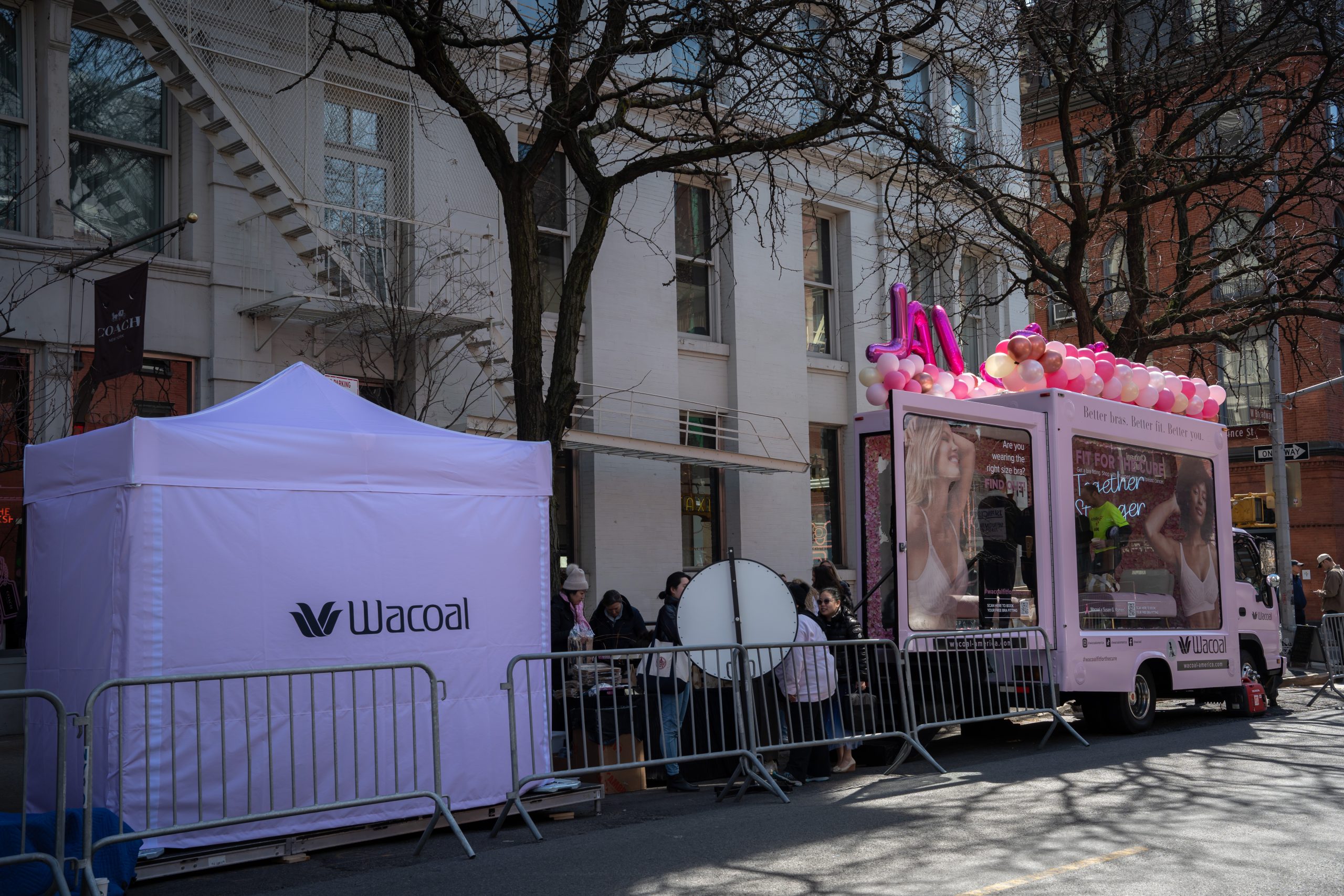 - Procured a custom printed tent for private bra fittings on site with proper seating, mirrors and heat to keep guests warm.